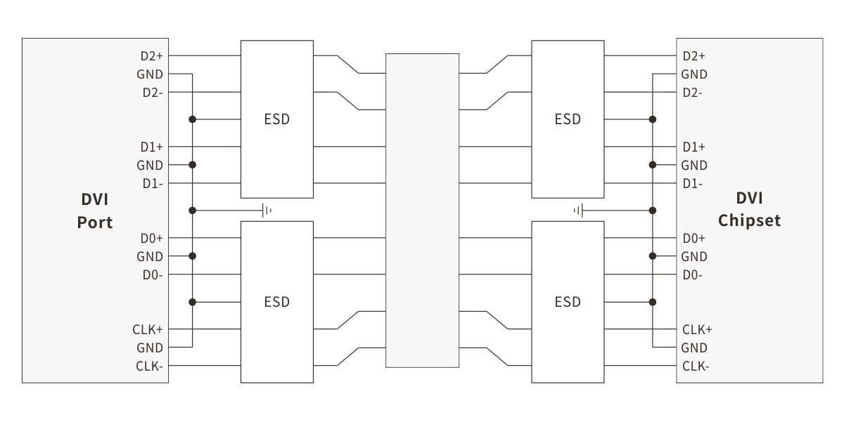 DVI (Digital Visual Interface) is a digital interface commonly used for video signal transmission. It is widely used in industrial, commercial and consumer electronic products, such as computers, monitors, projectors, etc. Due to its large number of signal pins, delicate structure, and frequent plugging and unplugging with external connection devices, it is vulnerable to electrostatic discharge (ESD) threats, so a reasonable electrostatic protection design is required to ensure the reliability and long-term stable operation of the system.